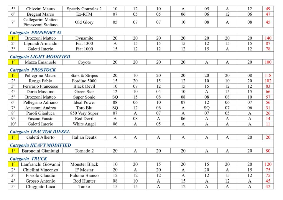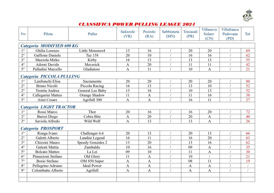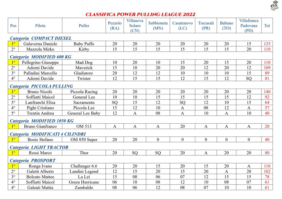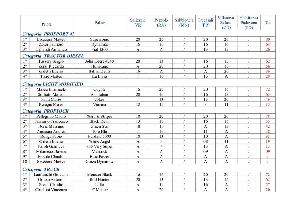 Buongiorno a tutti, questa è la classifica finale del Campionato Power Pulling 2019.